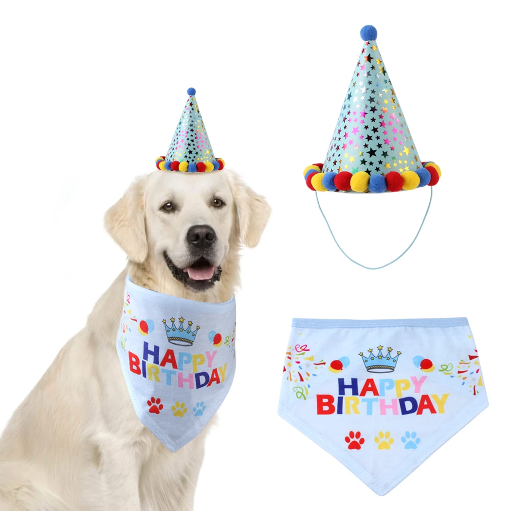 Pet День рождения платье шляпа слюнявчик полотенце Набор Мода Регулируемая бандана для животных вечерние костюм с головным убором для дня рождения дропшиппинг