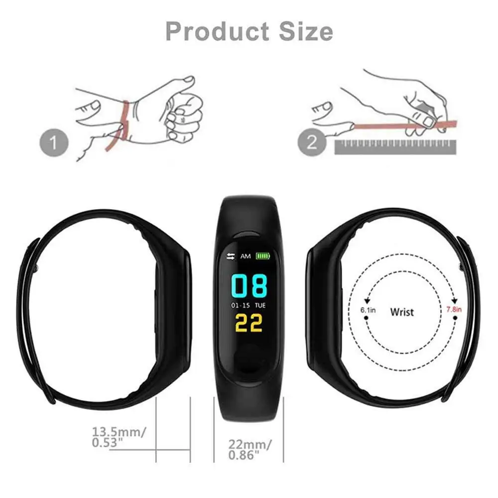 Умный браслет M3 Plus с пульсометром, водонепроницаемый умный браслет с датчиком кровяного давления для заботы о здоровье, смарт-часы M3 Pro, наручные часы Bluetooth, фитнес-трекер
