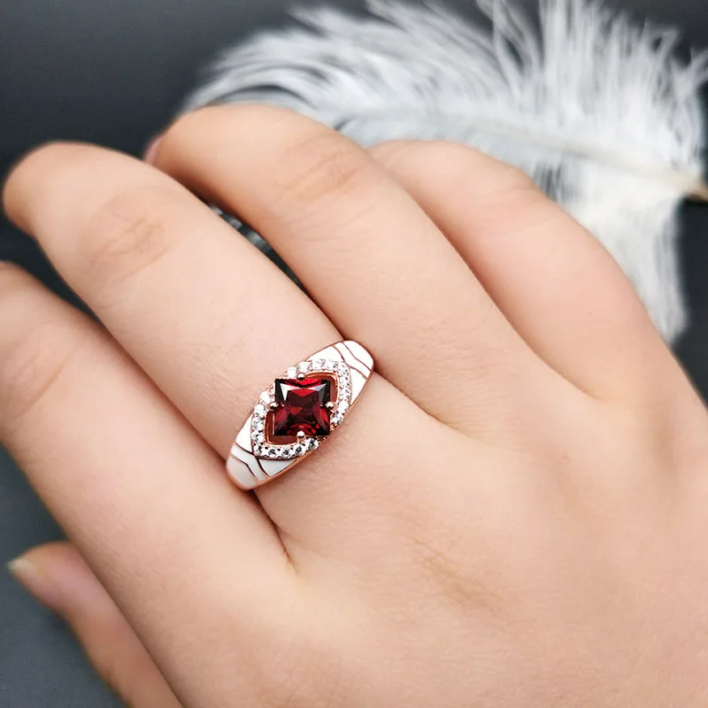 Товар: 925 Серебряные кольца и серьги с натуральными драгоценными камнями Материал: серебро 925 пробы; Цвет розы Серебряный Вес: около 7,43 г (один комплект) Центральный камень: натуральный Гарнет квадратный 6 мм Вес драгоценного камня: около 3.5ct Обработка драгоценных камней: нет Место происхождения: Мозамбик Боковые камни: кубический циркон