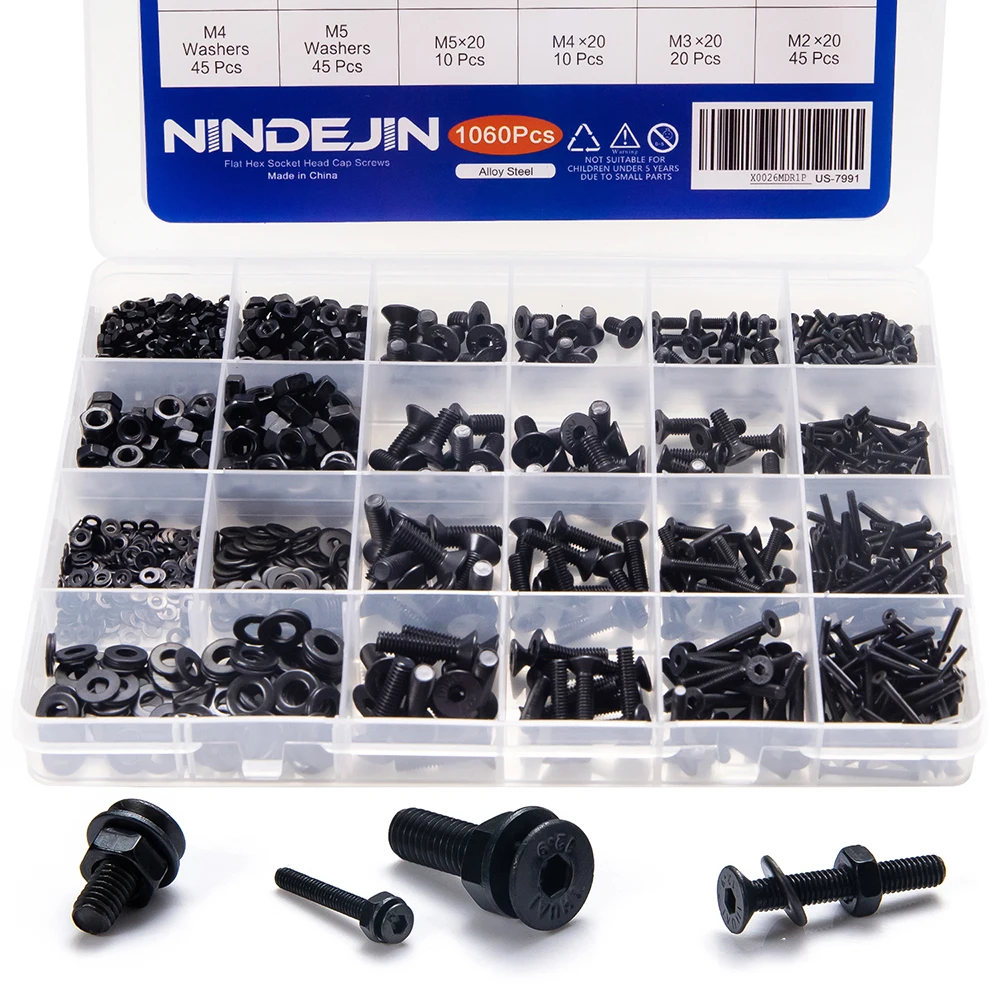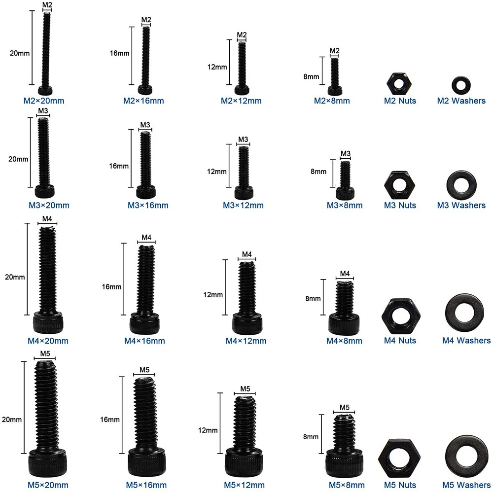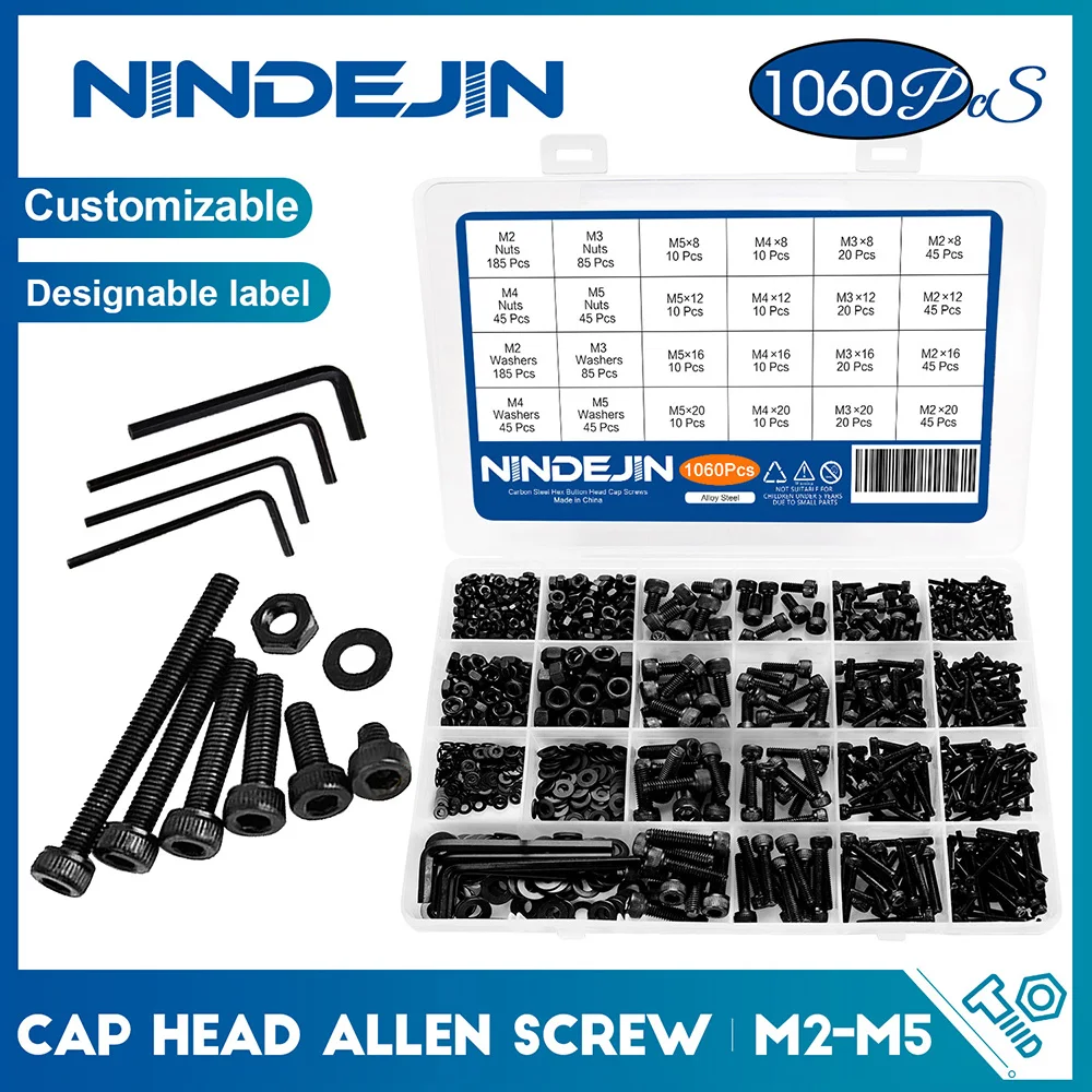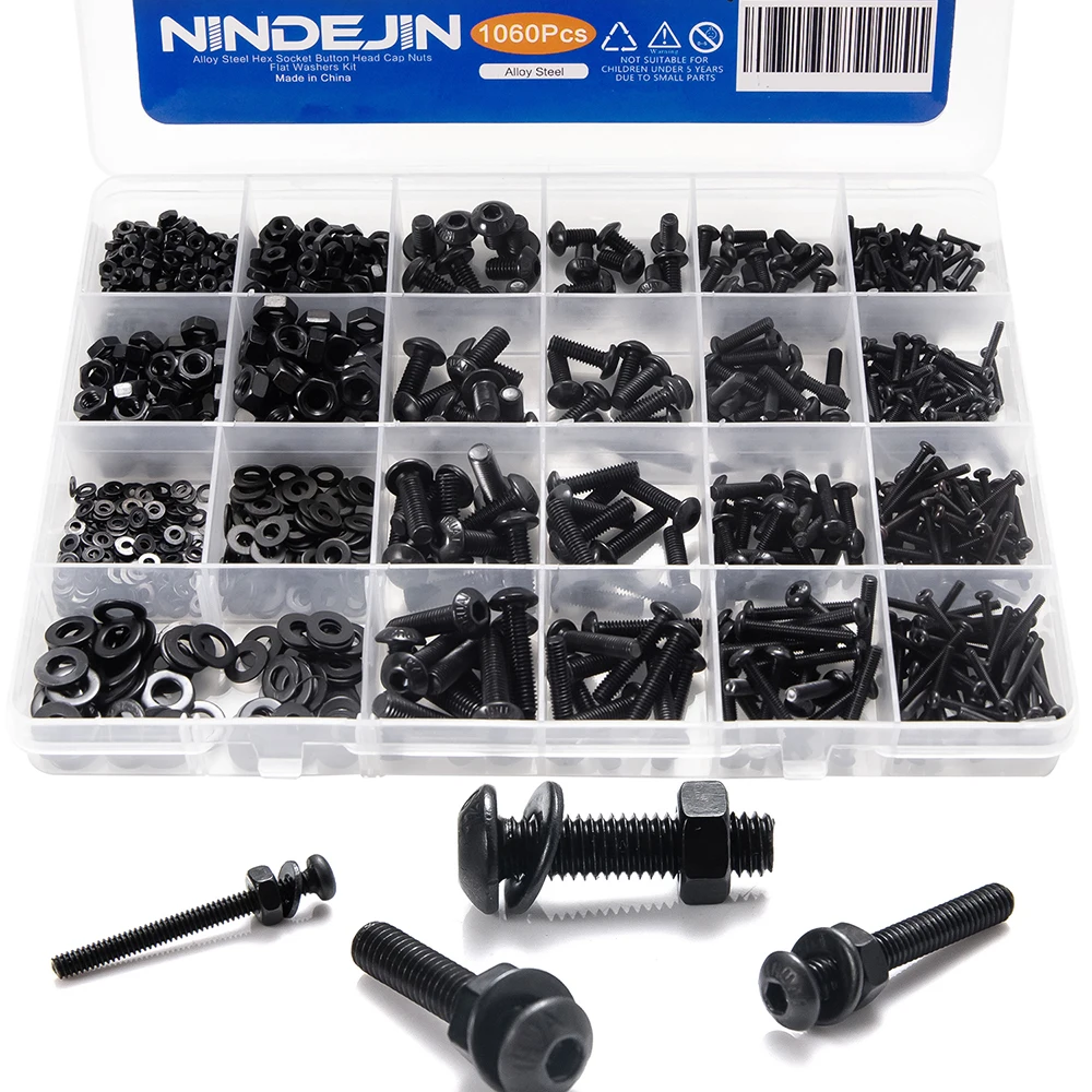 1060 шт M2 M3 M4 M5 набор винтов с шестигранной головкой из углеродистой стали с плоской круглой головкой винты болты и гайки Ассортимент Комплект с коробкой для хранения