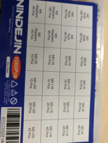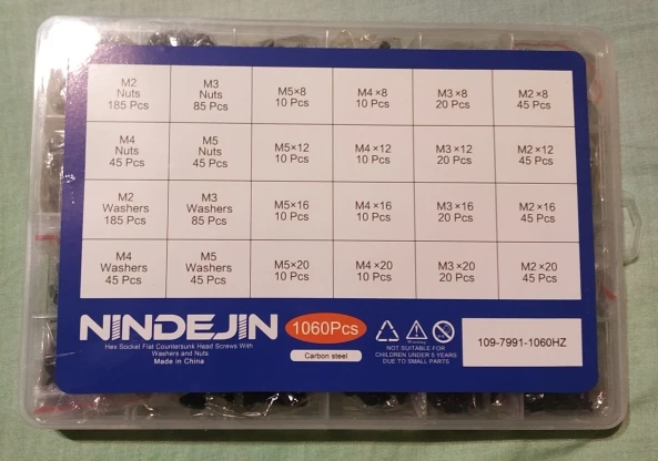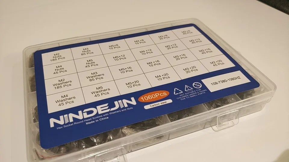 Продукт был хорошо упакован, все винты, гайки и шайбы были индивидуализированы. Единственный негатив-это расположение коробки, было бы лучше, если бы фиксаторы были расположены в рядах, поэтому ряд M3 и т. Д. Также разделители были удалены из передней части, чтобы обеспечить шестигранные ключи, но недостающие разделители не были поставлены в комплекте.