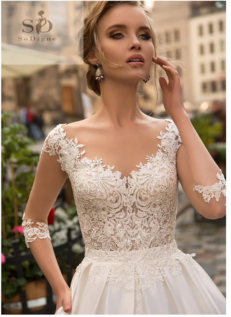 Женское атласное платье с длинным рукавом, с кружевной аппликацией