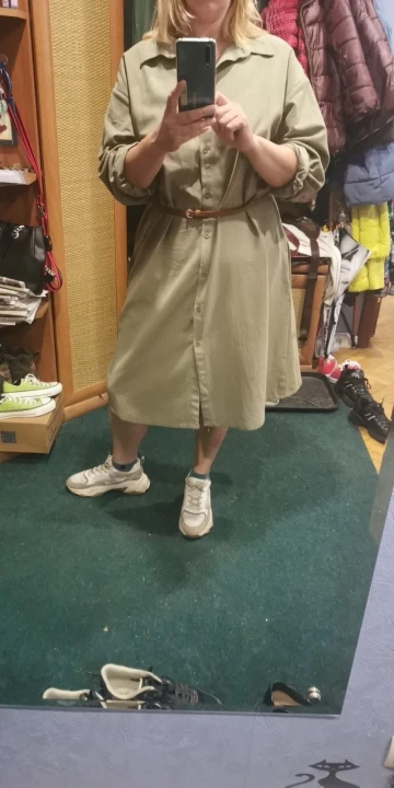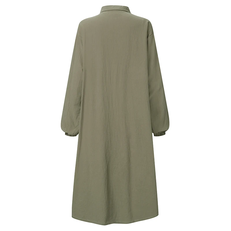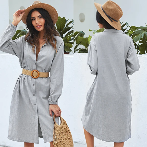 Женское платье-рубашка с длинным рукавом, из хлопка и льна