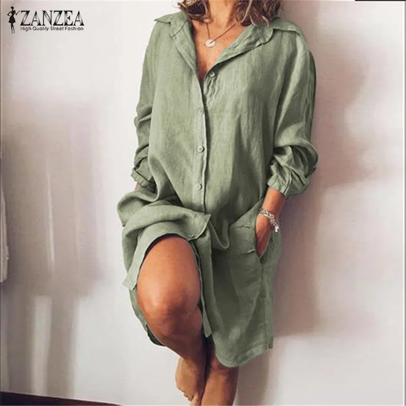 Элегантное однотонное платье-рубашка ZANZEA 2022, женский весенний ...