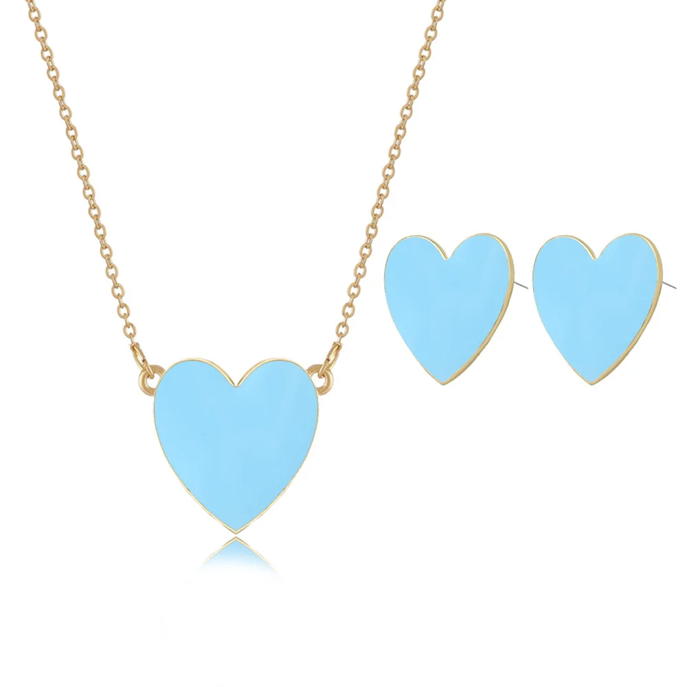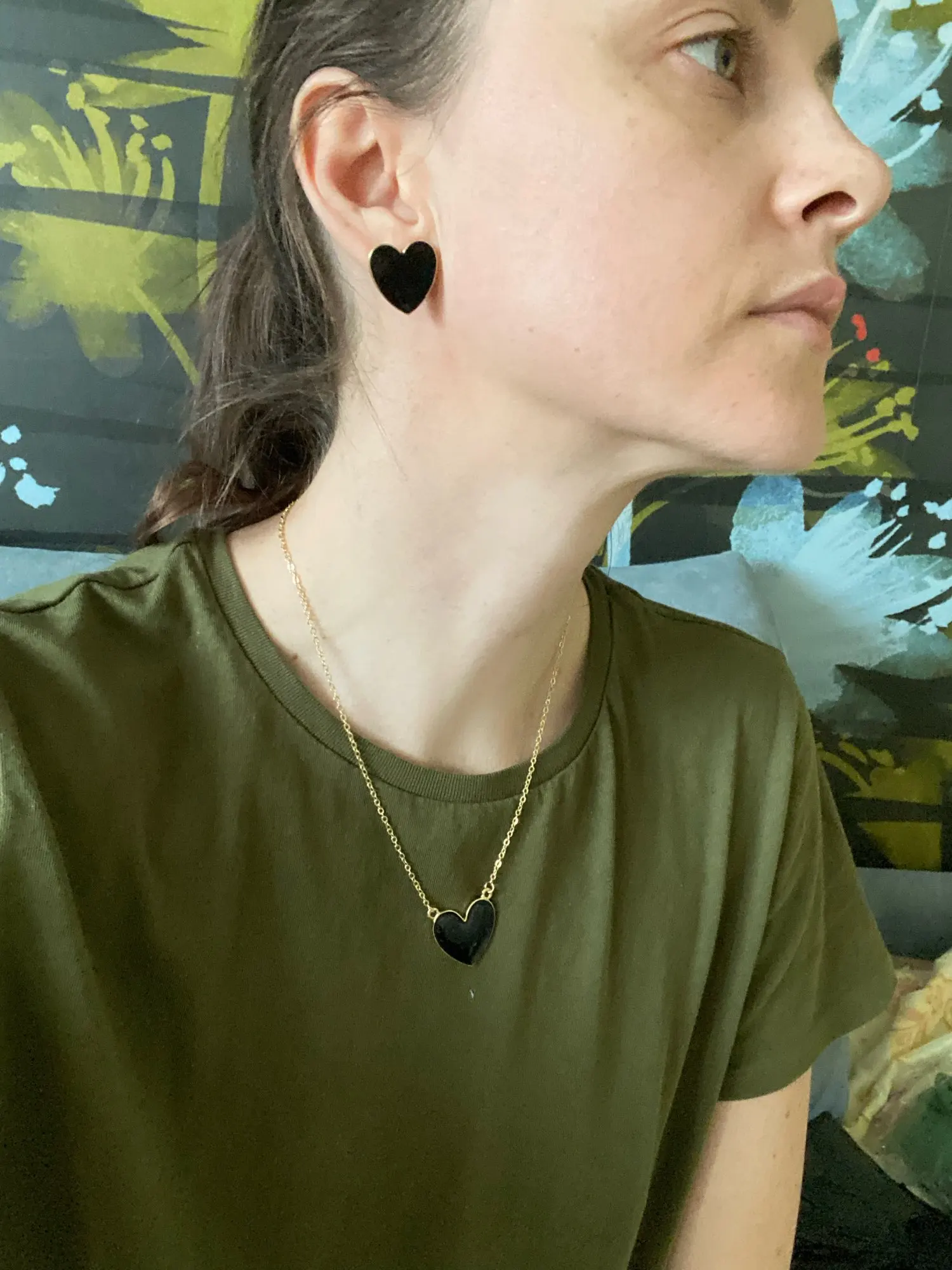 Женский комплект ювелирных украшений, ожерелье и серьги с черной эмалью в форме сердца