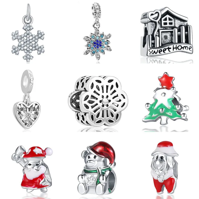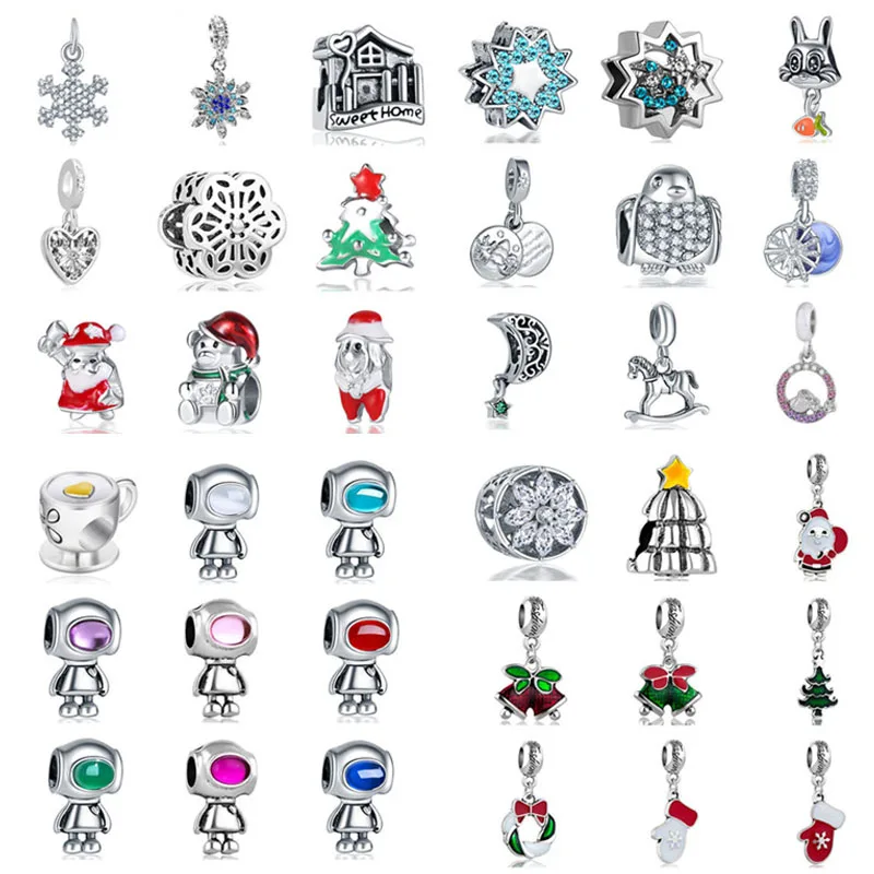 Серебряный цвет 1 шт. Новый Рождественский подарок Снежинка колокольчик Санты милый дом робот Сделай Сам бисер Подходит для оригинального Pandora шармы браслет S046