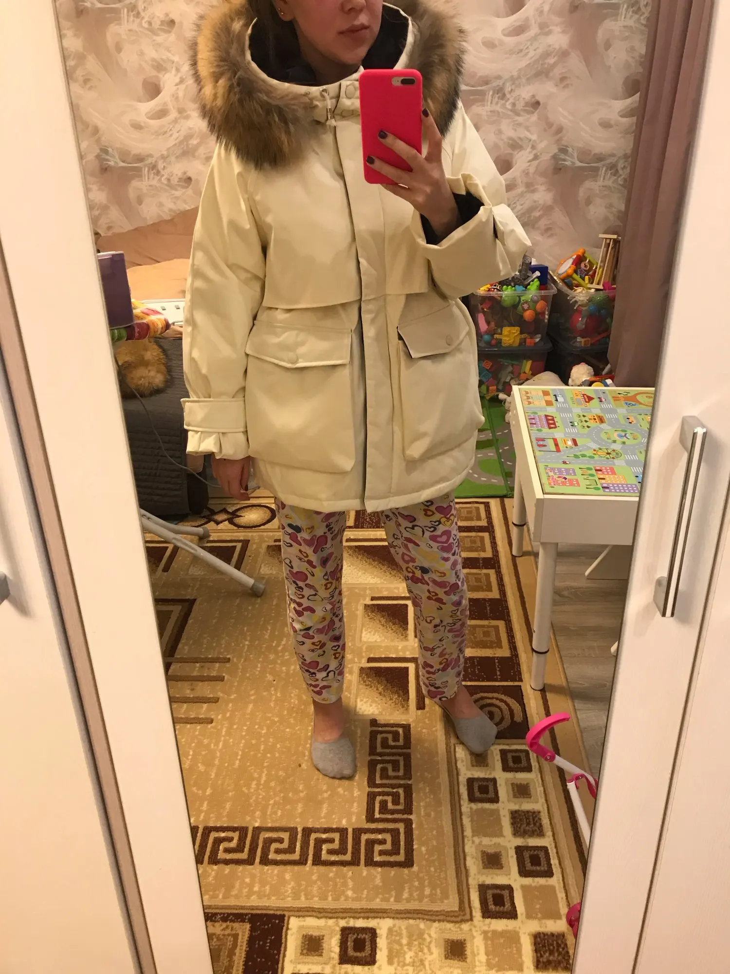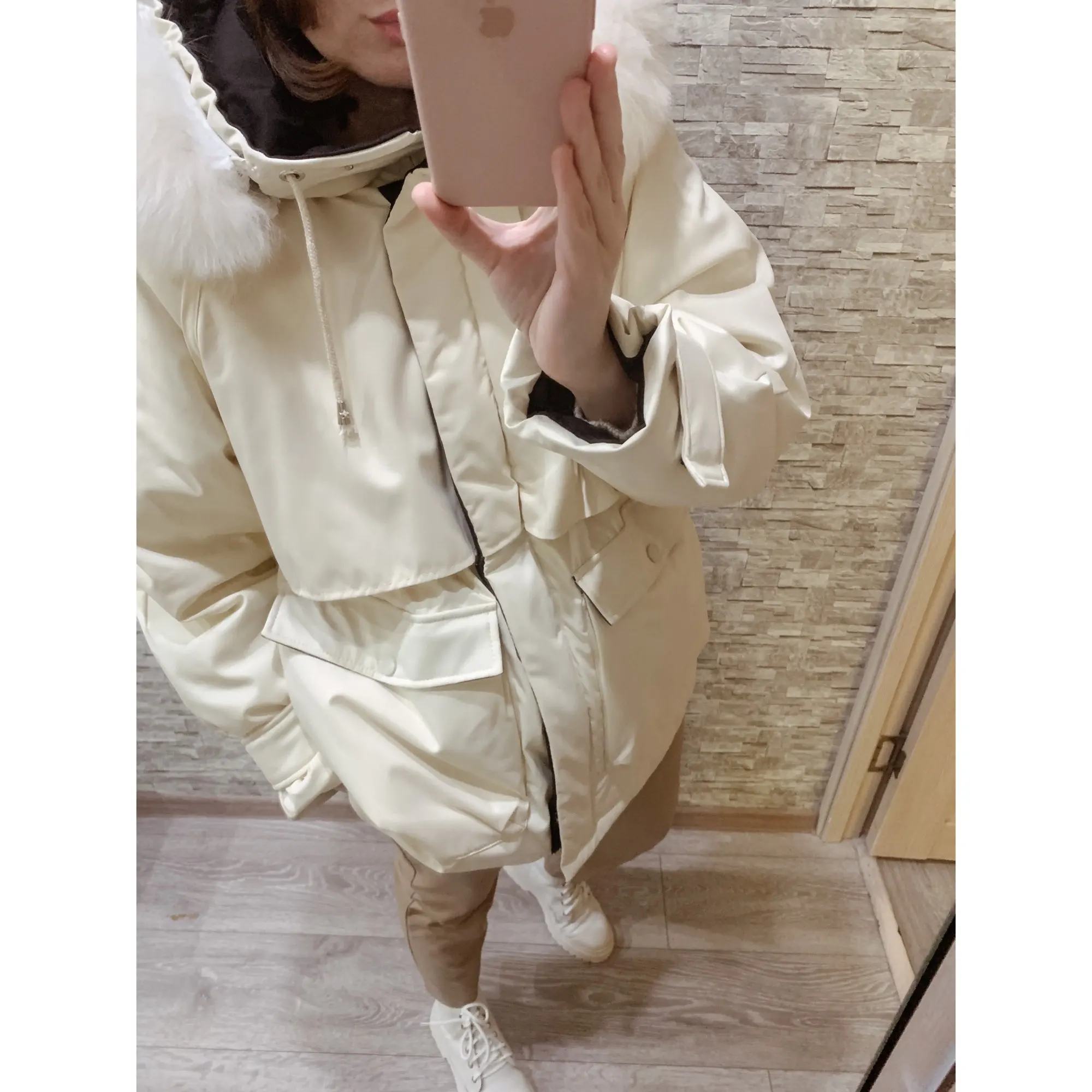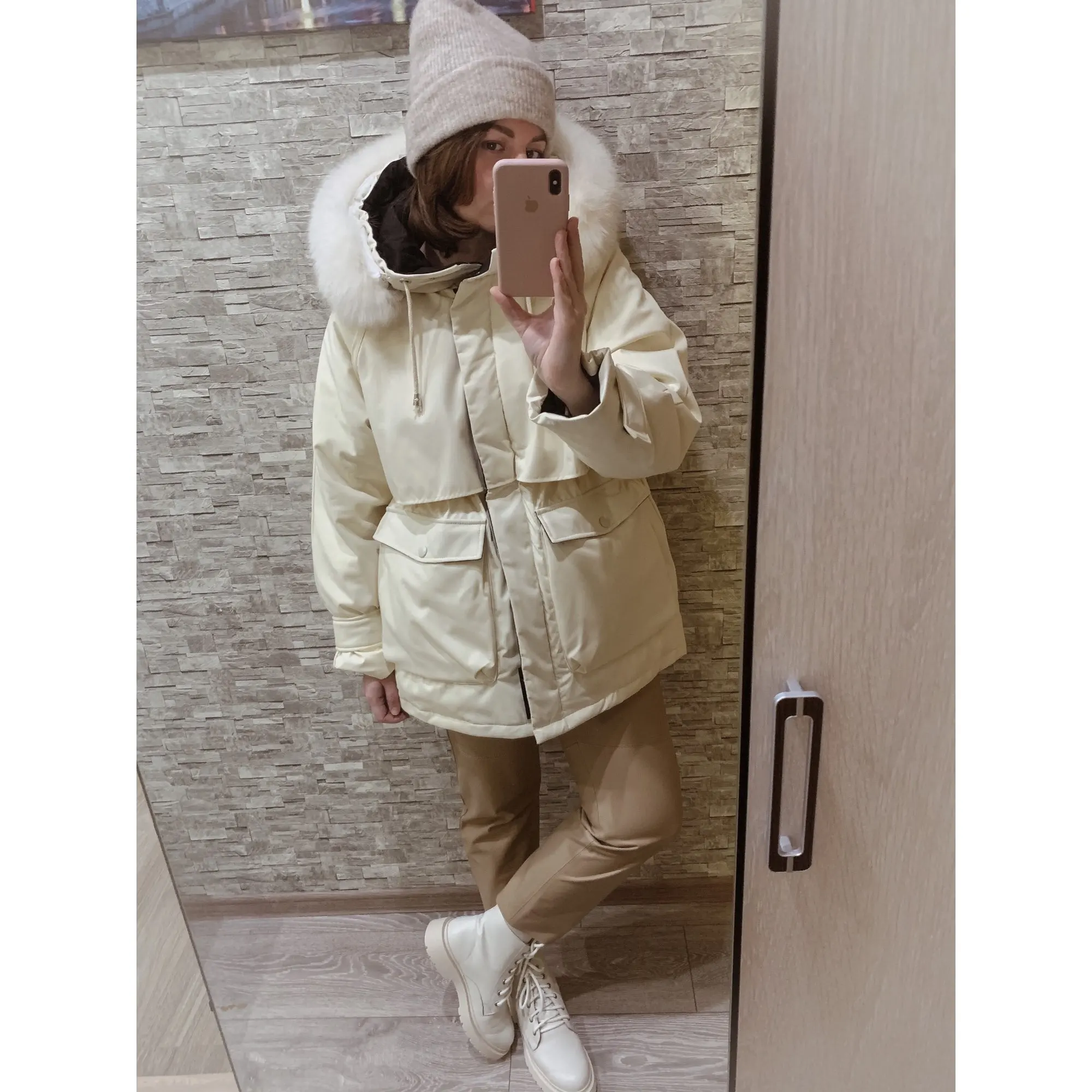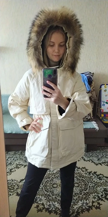 Парка - огонь! Доставка очень быстрая до Калининграда, по сравнению с другими товарами) курьером на дом. Косяков не обнаружила) искусственный мех - красивый, сама куртка выглядит качественно. У меня размер s, получилось оверсайз, но спасли затяжки на талии, отрегулировала под себя) в целом можно под низ надеть тёплую толстую кофту, даже две) по длине закрывает пору, рост 168, рукава - отлично. Очень большие карманы, удобно! Цвет красивый молочный) рекомендую! Кстати тёплая, ветром не продувается до -5 пойдёт )))