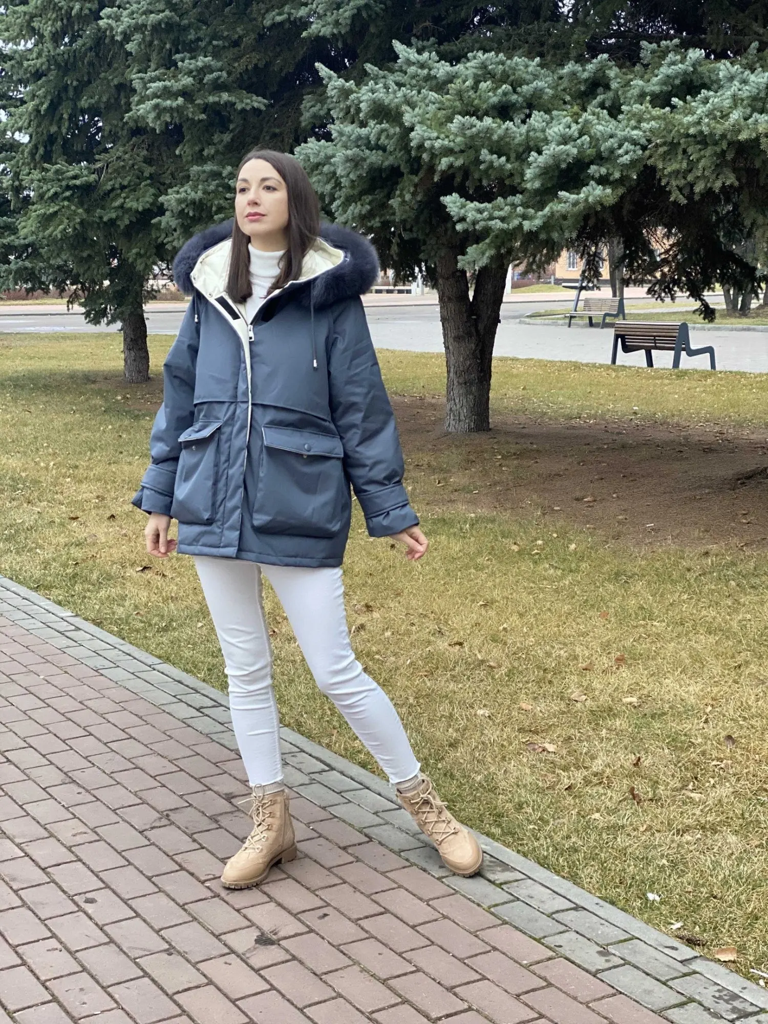 Куртка неплохая, материал плотный. На рост 168 талия ровно под грудью, меня не смущает, я хотела именно такой силуэт. Мои параметры: ОГ90, Т63, ОБ89, размер s мне довольно свободен, затянула кулиску максимально. Рукава впритык. Мех хороший, пушистый, но... Не знаю, как другим, мне пришёл явно не от этой куртки. На куртке 1 ряд пуговиц, на мехе 2 ряда петель, но не это самое неприятное. Края меха лысые, т.е., шкурка по длине короче, чем тканевая основа, на фото видно. Выглядело ужасно. Подшила внутрь эти края стремные, получилось лучше, но убила на это час и осадочек остался. Ещё момент, писали, что пух внутри, не знаю, как комментаторы это поняли, у меня сомнения, наощупь похоже на синтетический наполнитель. И в воротнике, где дырки под шнурок, проглядывает синтетический наполнитель, его прям видно, если заглянуть туда. Может, конечно, он только в области воротника, не знаю. Ну и набита она не так, чтоб плотно. А так ничего, симпатичная парка.