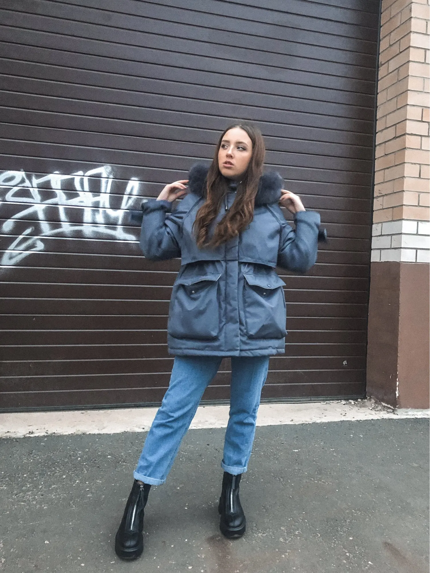 Куртку купила за 3221,за такую цену вообще огонь. Люблю посвободнее, на 44-46 взяла L, можно ещё свитер одеть. Но для сильных морозов не подходит. Мех натуральный. Доставка почти месяц, думаю из-за того что выбрала получение в пятерочке.