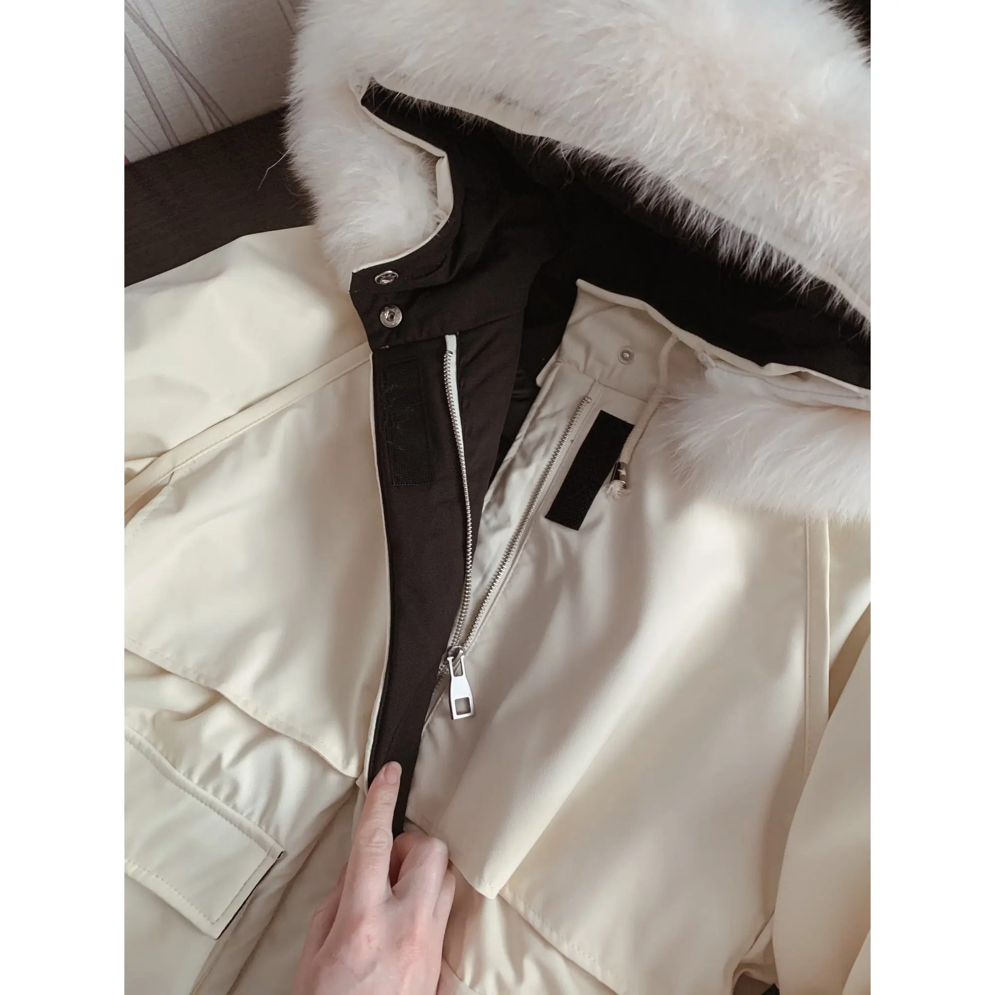 Парка очень качественная, все швы ровные, мощная молния с замком (железо), ткань плотная, мех натуральный красивый, пушистый, по ощущениям очень тёплая. Цвет более молочный нежели на фото. К заказу рекомендую однозначно! Заказ шёл 2 недели на Дальний восток.