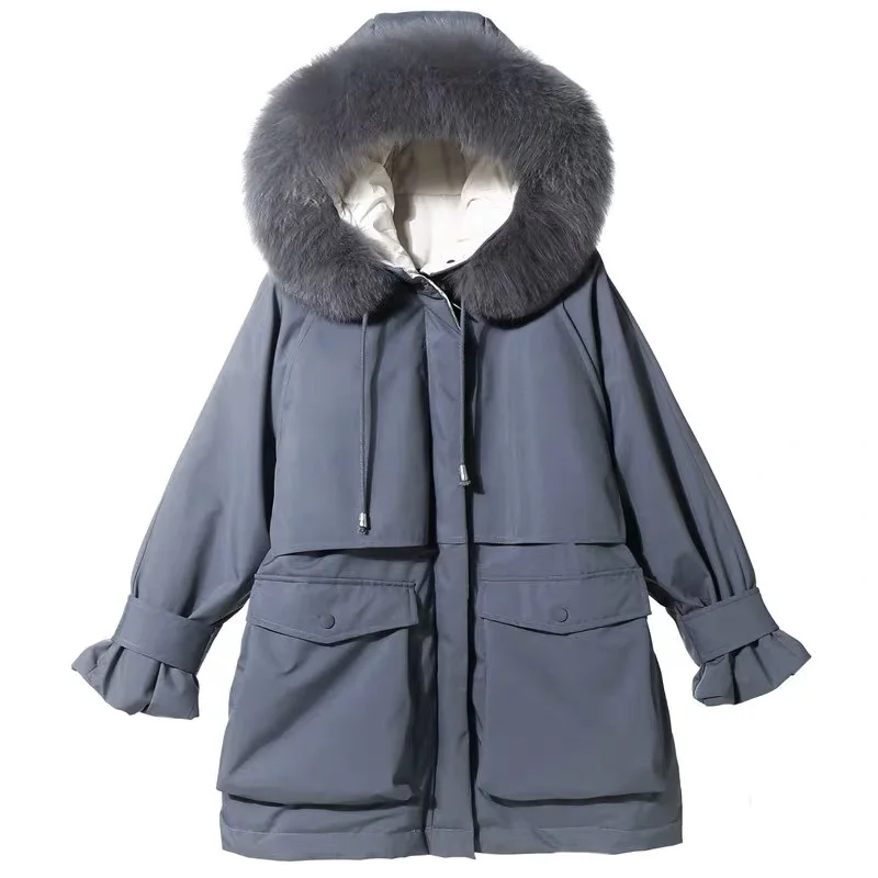 Женская теплая парка с поясом Fitaylor, куртка на белом утином пуху (90%) с капюшоном, обшитым натуральным лисьим мехом, модель большого размера на зиму