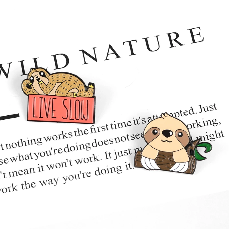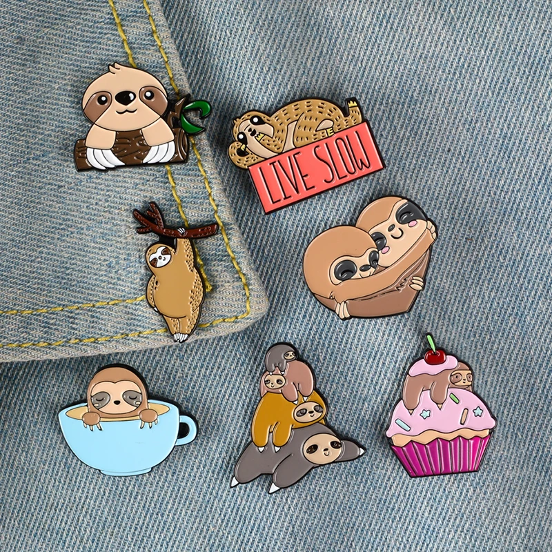 Брошь из металлического сплава с изображением милых животных, Ленив...