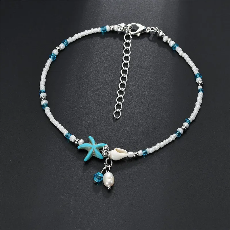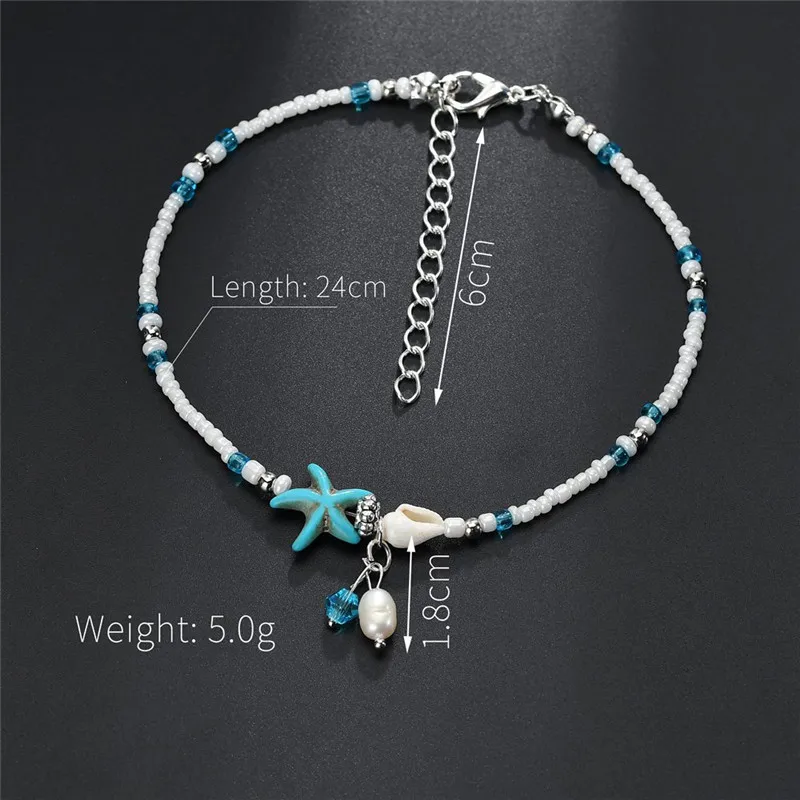 Женские богемные браслеты Vagzeb с имитацией жемчуга в виде морской звезды, браслеты на щиколотке, летняя цепочка для ног, подарок