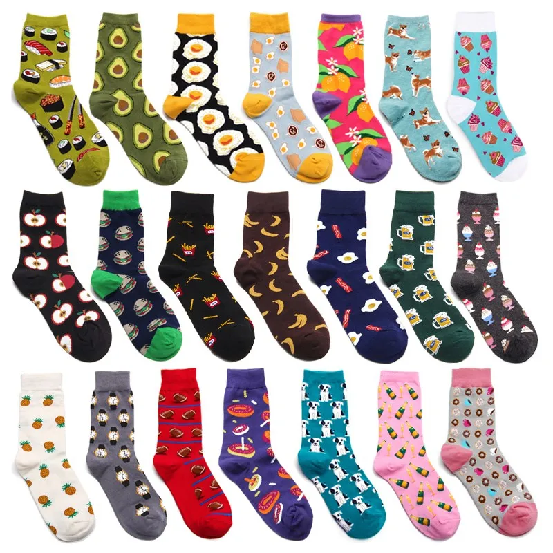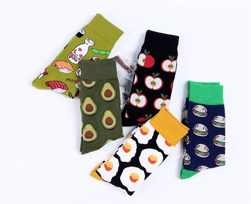 Носки для скейтборда в японском стиле Харадзюку, Забавные милые Мультяшные носки с фруктами, бананом, авокадо, лимоном, яйцом, печеньем, пончиками