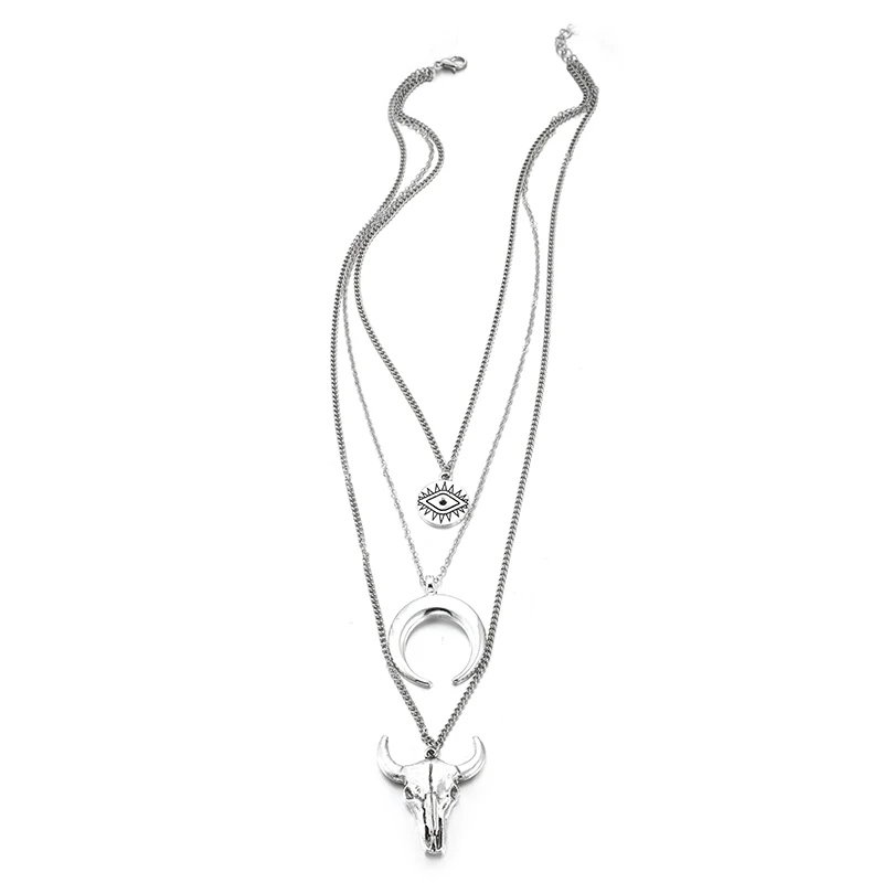 HuaTang серебро Цвет Луна в виде Головы Быка панк колье ожерелье для женщин с многослойным покрытием цепи длинное ожерелье ювелирные изделия, ожерелье, C18107