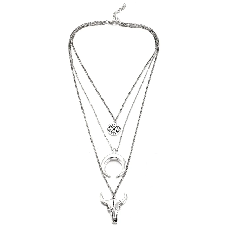 Ожерелье женское, многослойное, с глазами, Луной и быком, серебрист...