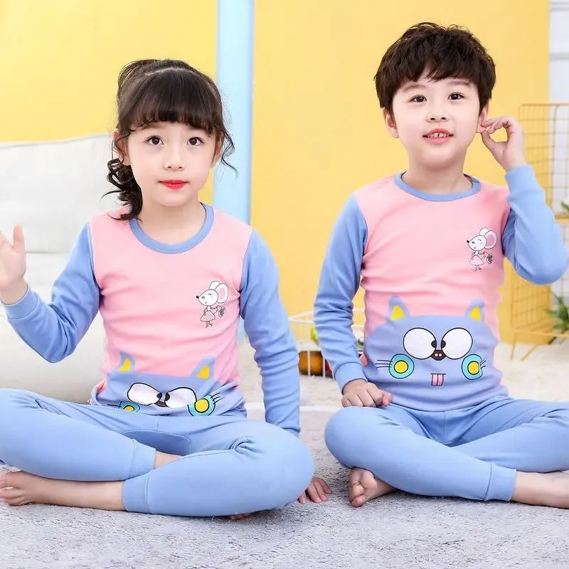 Детские пижамы для мальчиков и девочек 2 шт., Детская осенняя хлопк...