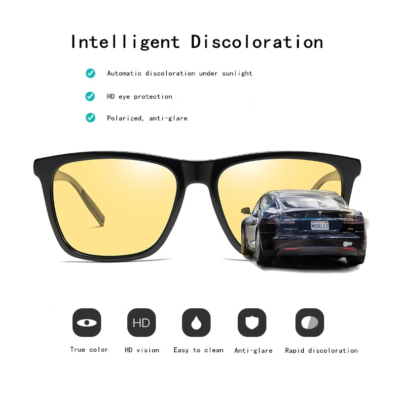 Солнцезащитные очки S388 Мужские поляризационные, квадратные фотохромные линзы, дневное и ночное видение, для вождения, с антибликовым покрытием