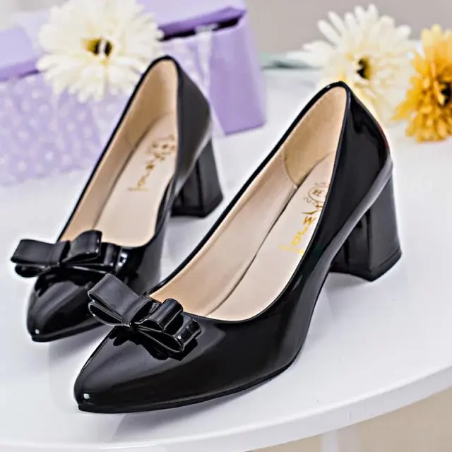 Женские туфли-лодочки из лакированной кожи на высоком массивном каблуке, свадебные туфли, офисная обувь для невесты, размеры 34-41, 7679