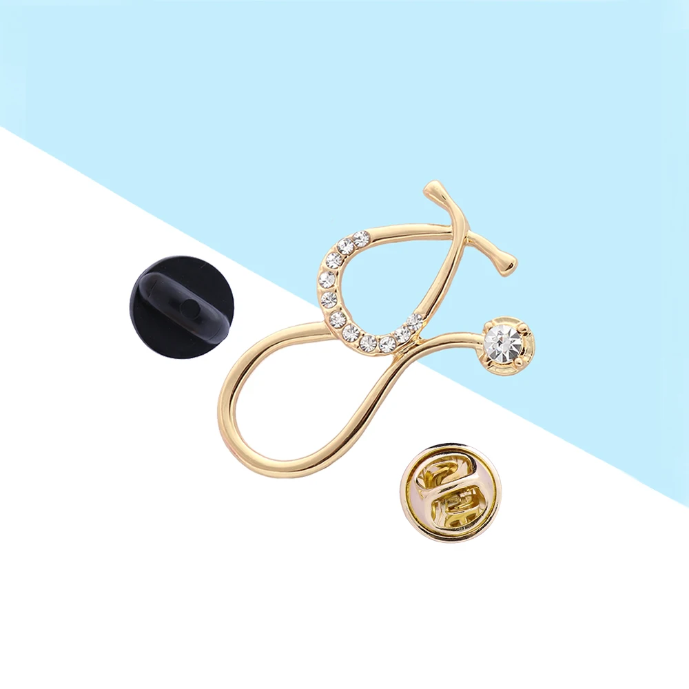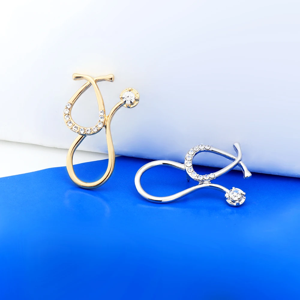 Броши DCARZZ с кристаллами в форме стетоскопа, золотой подарок для девушки, булавки для врача в медицине, модная бижутерия, милая булавка на лацкан, металлическая женская