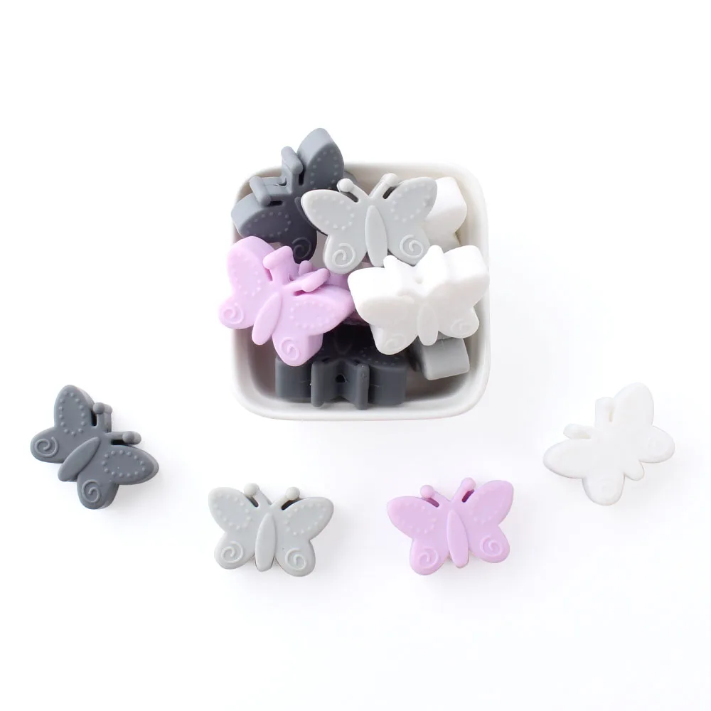 100 шт., силиконовые бусины-бабочки для прорезывания зубов, 25 мм