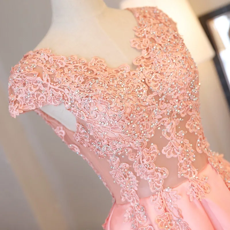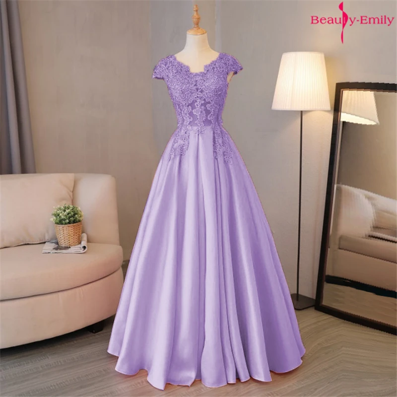 Женское длинное вечернее платье Beauty Emily, розовое кружевное плиссированное платье без рукавов с V-образным вырезом и аппликацией, платье для выпусквечерние вечера, 2022
