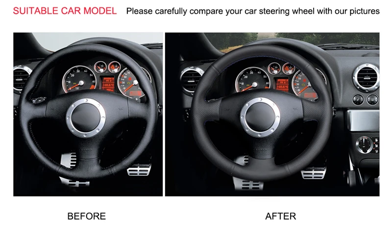 1. Перед размещением заказа, пожалуйста, внимательно сравните, если ваше рулевое колесо полностью совпадает с нашим изображением. Если они одинаковые, пожалуйста, не стесняйтесь размещать заказ. Если есть какие-либо различия, чехол будет неподходящим!
