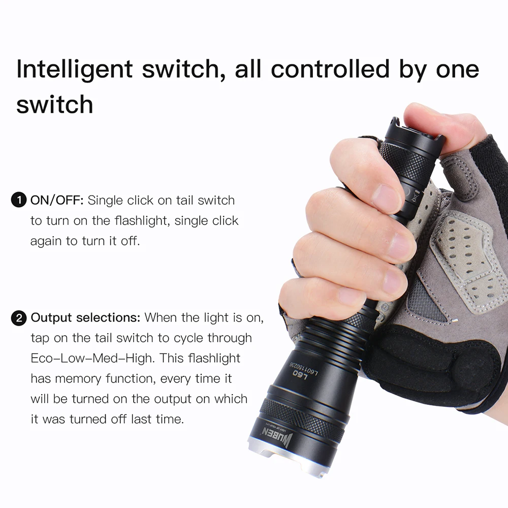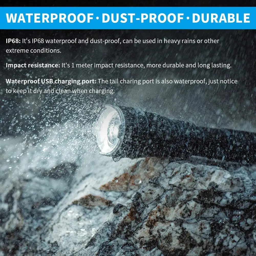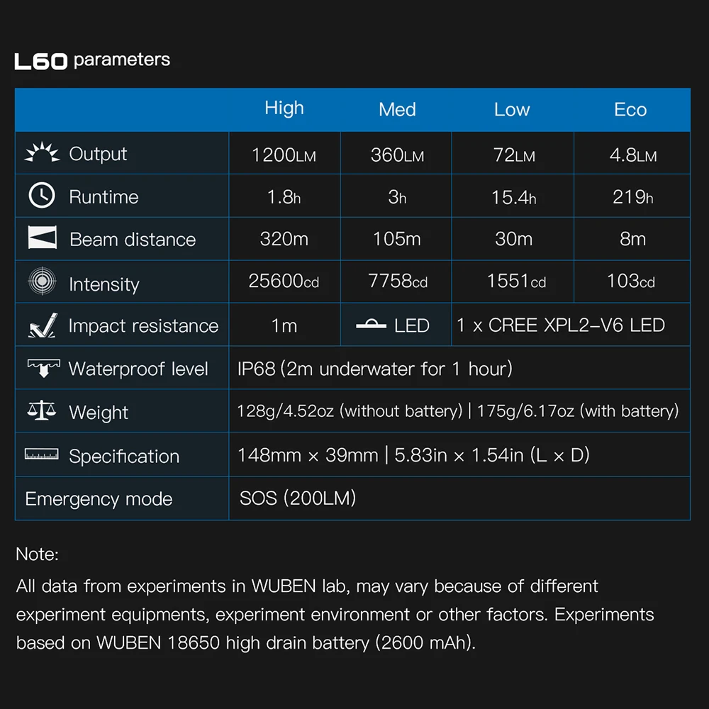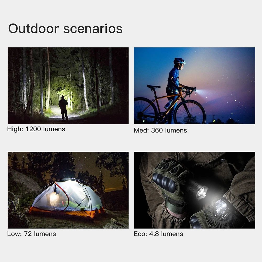 Фонарик WUBEN L60, светодиодный, регулируемый фонарь с USB-разъемом, 1200 люмен, аккумулятор 18650, водонепроницаемость IP68, 5 режимов освещения для кемпинга