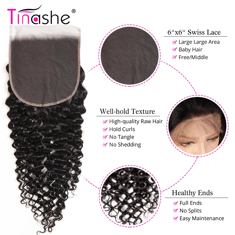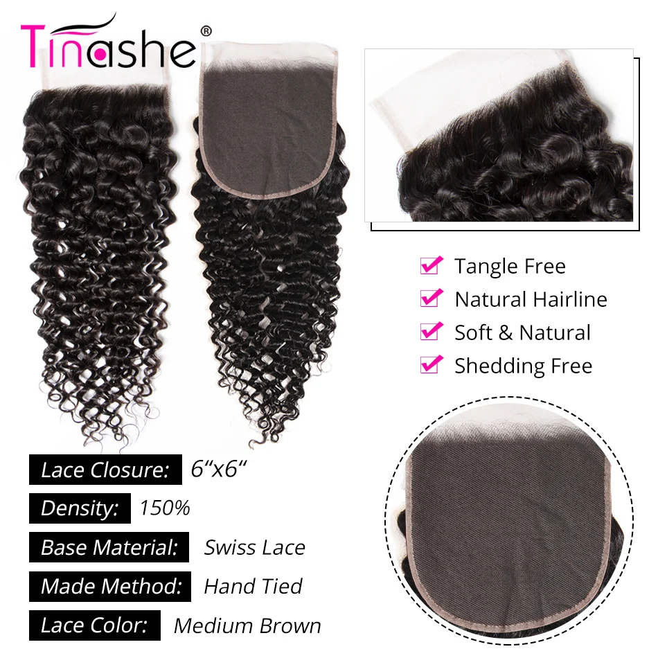 Волосы Tinashe 6x6, кружевные застежки с застежкой, вьющиеся пряди с застежкой, бразильские человеческие волосы без повреждений, 3 пупряди с застежкой