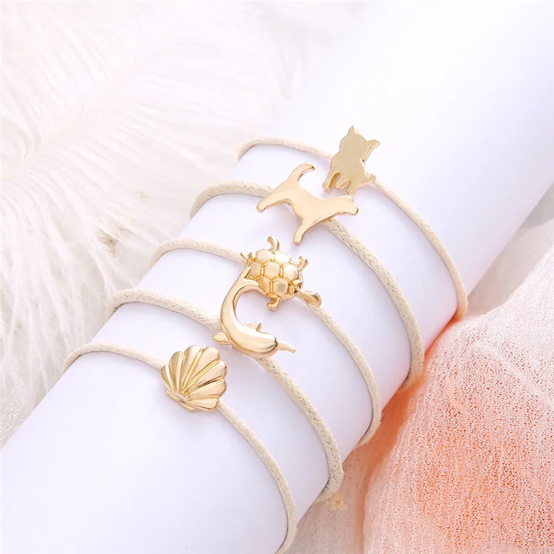 Vagzeb богемные милые золотые кошачьи Черепашки Дельфин ракушка браслеты Собака Для женщин девушек бежевые веревки цепи браслеты наборы ювелирных изделий