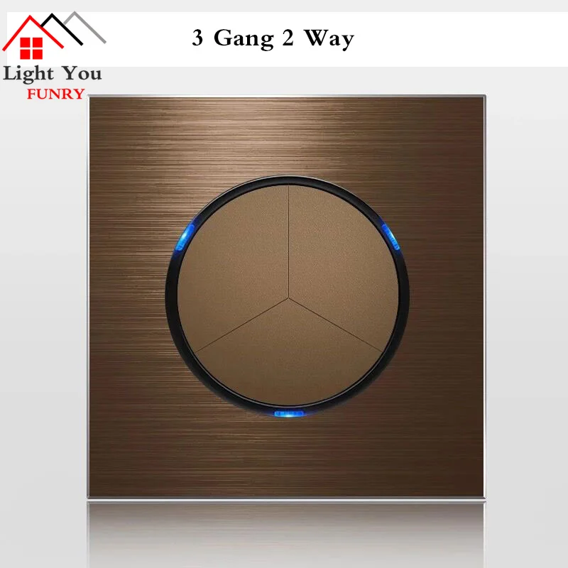 1 2 3 4 Gang 1 Way двусторонний Бытовой настенный выключатель, алюминиевый матовый коричневый панельный переключатель со светодиодным индикатором 86*86 мм