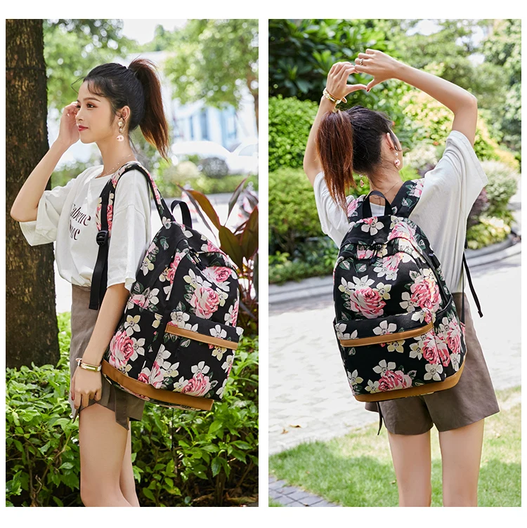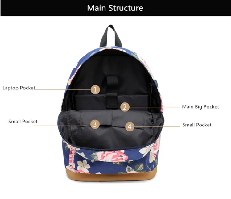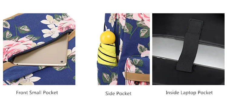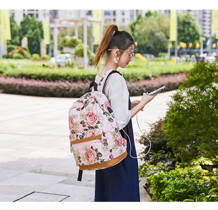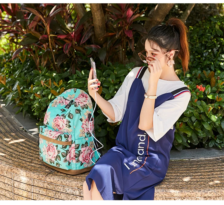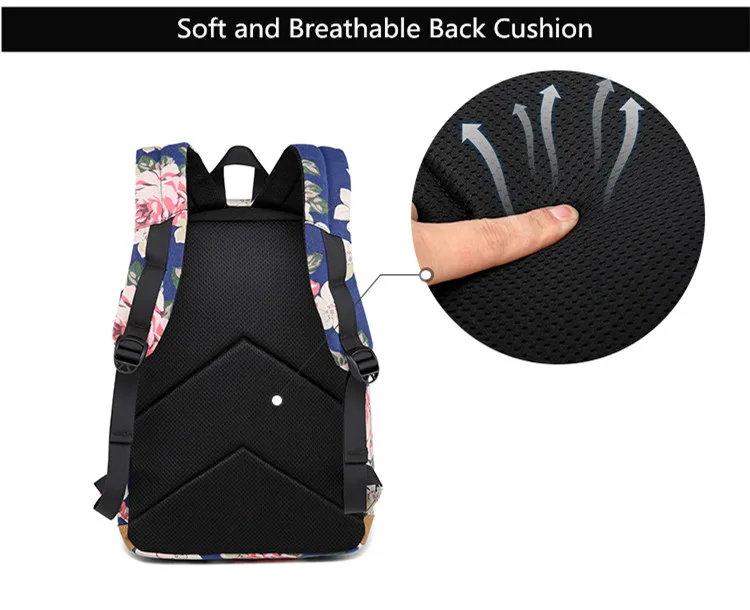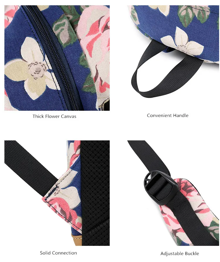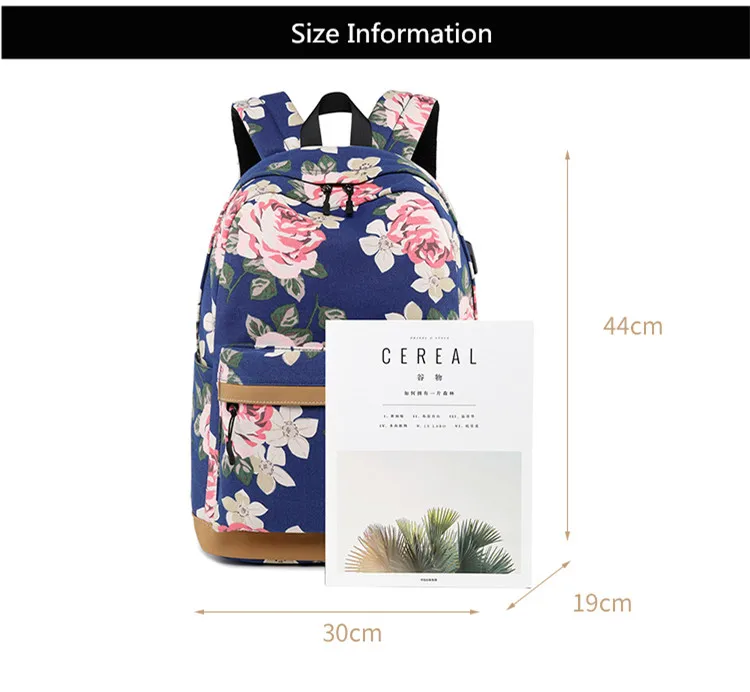 Холщовый школьный рюкзак Fengdong для девочек-подростков, 3 шт.компл., цветок в Корейском стиле