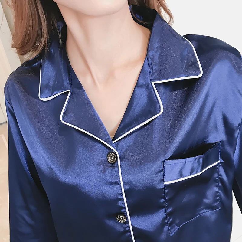 Женская атласная пижама из искусственного шелка, с длинным рукавом