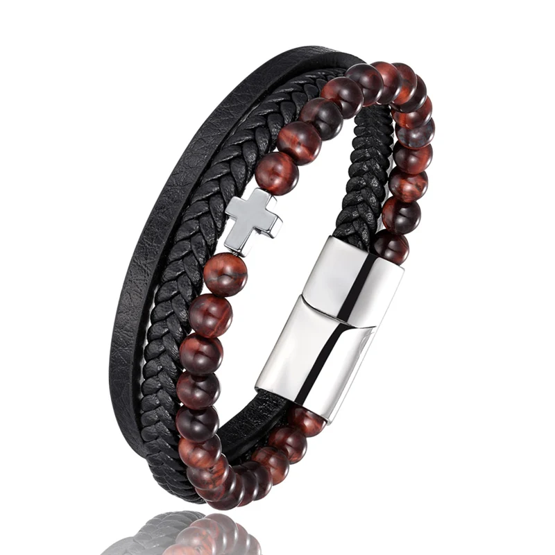 Лидер продаж, 6 мм браслет из нержавеющей стали с натуральным тигровым глазом, многослойный кожаный браслет из нержавеющей стали, браслет для мужчин и женщин