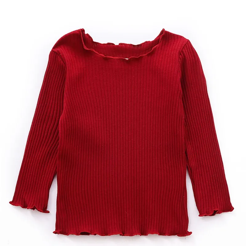Новая Осенняя Однотонная футболка с длинным рукавом для маленьких девочек, детские хлопковые топы, футболки, повседневная блузка