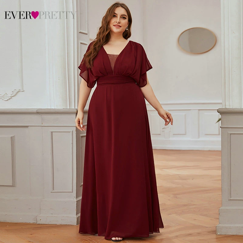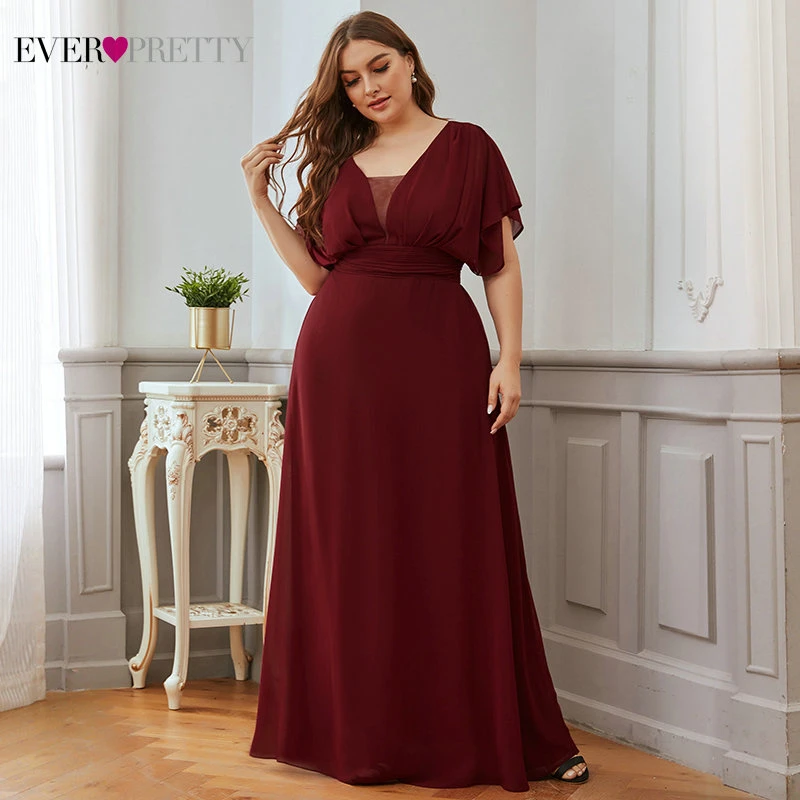 Вечерние платья размера плюс для женщин Ever Pretty EP07851 А-силуэта с v-образным вырезом винтажные платья для особых случаев Robe De Soiree Femme 2020