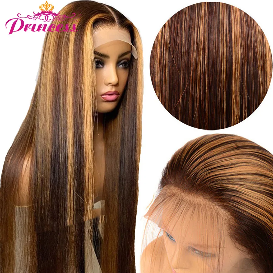 Парик принцессы из человеческих волос на сетке спереди, медовая блондинка, предварительно выщипанные бразильские прямые парики на сетке спереди, парики из человеческих волос без повреждений