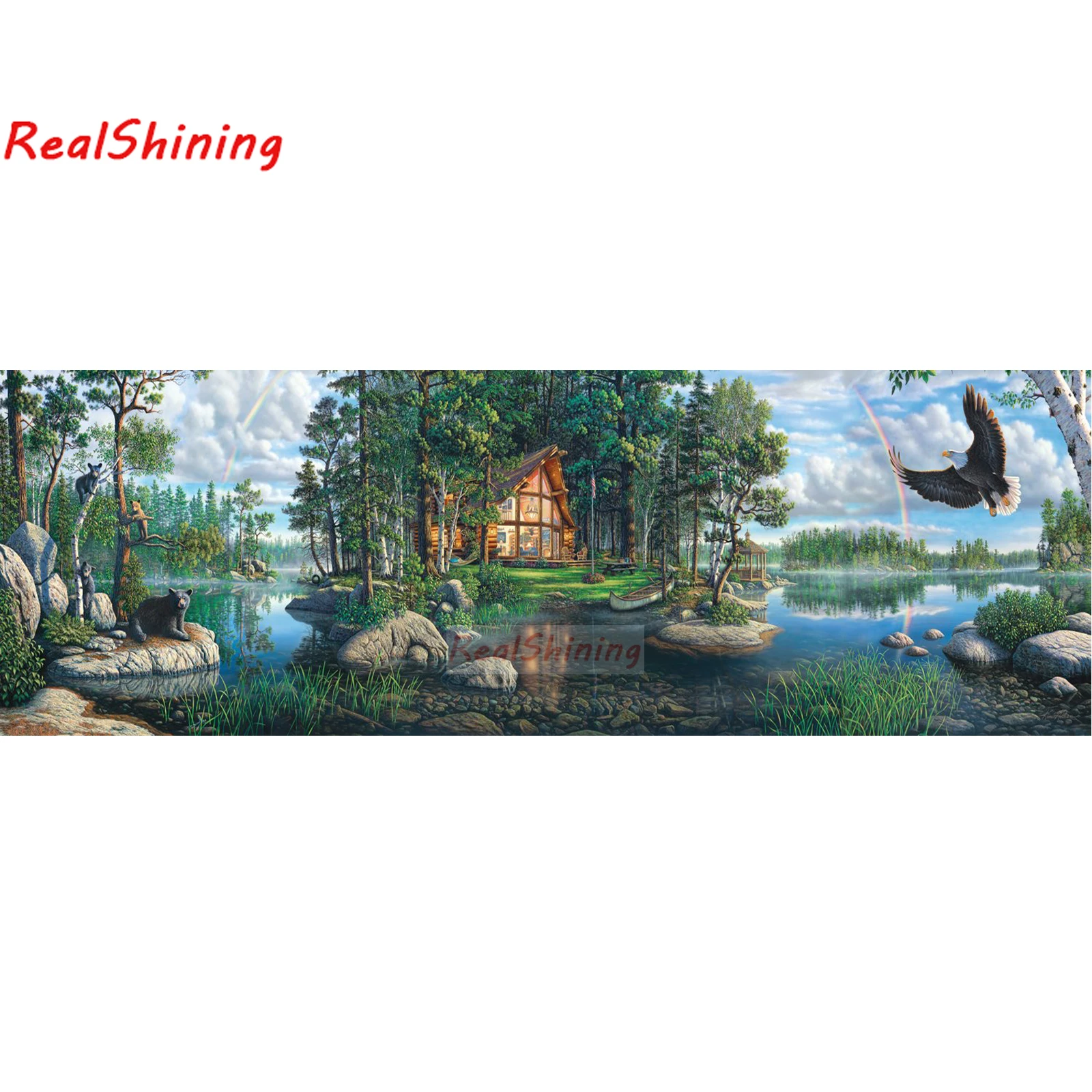 Алмазная вышивка "сделай сам" большого размера 5D, вышивка крестиком, круглаяквадратная Алмазная вышивка у берега озера, шале для декора комнаты H2284