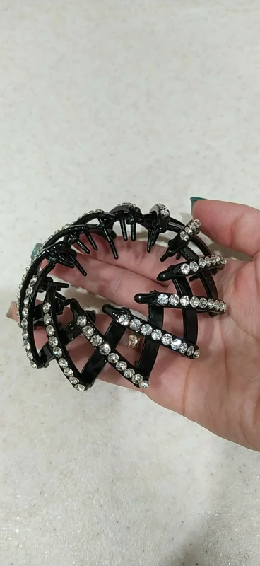 Искала именно такую заколку для волос на макушке -такие не оставляют заломов. Эта раздвигается с большим трудом, возможно , разработается, но пока, снимать некомфортно .