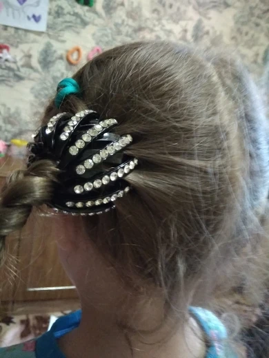 дочери понравилось, единств.енный минус заколка оказалась немного меньше чем было на виде,и цвет пришла розовая, а заказывали фиолетовую. а так в принцем на хвосте держится