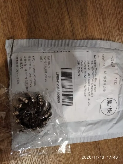 Страна: RU Metal color: 2 Доставка: Cainiao Super Economy 27.11.2020