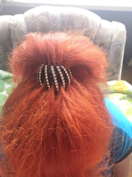 Хорошая заколка. Легкая и неплохо держит волосы. Правда, не совсем удобно надевать на густые волосы, она сразу деформируется (что легко исправить), но постоянно такое делать не всегда хочется