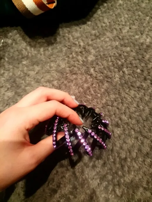 заколка отличная, держит крепко, причёска не разваливается, рекомендую. из недочётов: цвет страз более розовый чем фиолетовый