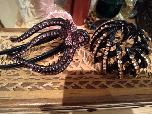 Зажимчики для волос очень нарядные. Оказались чуть-чуть меньше, чем виделось на картинке у продавца. Раскрываются и зажимаются тугонько. Держат волосы хорошо. Спасибо.