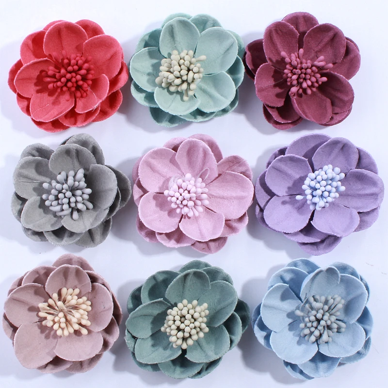 200 шт 5 см Новая искусственная войлочная ткань цветы с тычинки для свадебного приглашения шикарные поддельные цветы для украшения домашнего платья