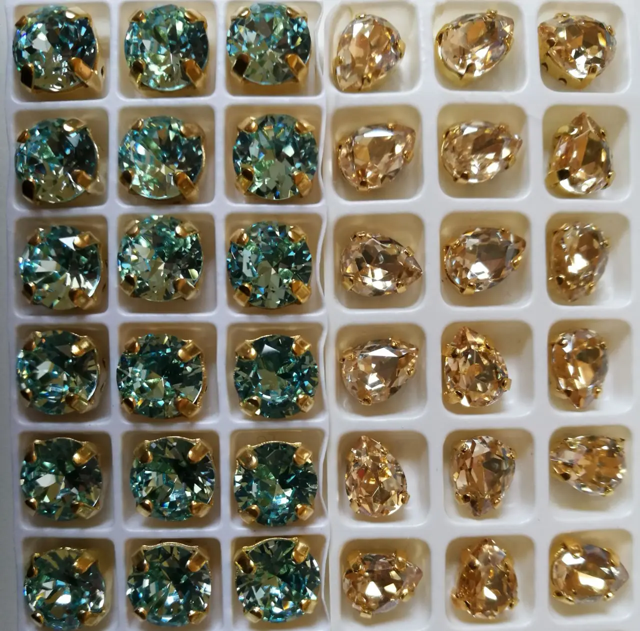 K9 хрустальное стекло для стразы, медь для установки, а затем покрытые серебром и золотом