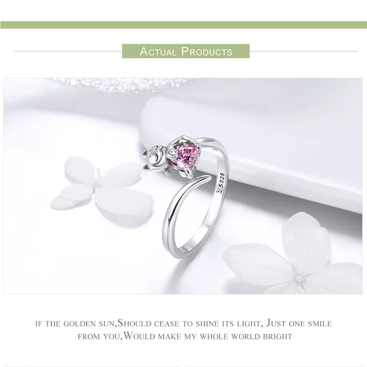 Кольцо с кошечкой Bamoer Lazy Kitty Cat, регулируемое кольцо на палец, Настоящее серебро 925 пробы, модное кольцо с кошачьим хвостом, изящное ювелирное изделие, GXR220