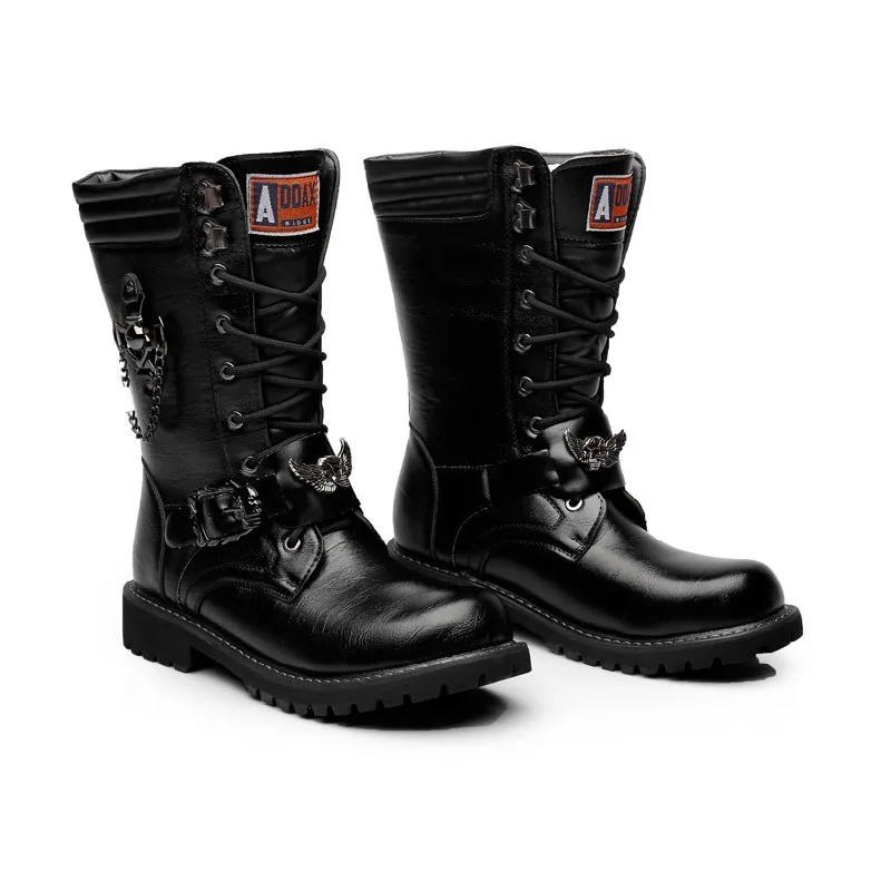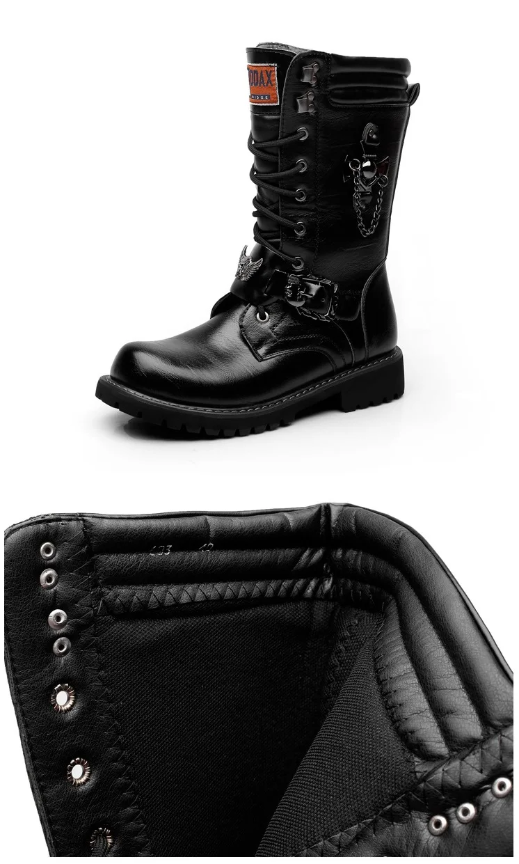 Армейские ботинки; Мужские ботинки в стиле милитари; Новинка 2021; Кожаные зимние черные ковбойские ботинки в готическом стиле; Ботинки в стиле панк с металлическим украшением; Мужская обувь; Ботинки в байкерском стиле
