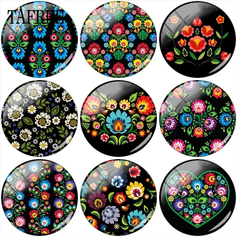 Польские узоры TAFREE для народного искусства, классический цветочный принт, 12 мм15 мм16 мм18 мм20 мм25 мм, стеклянный кабошон, фурнитура для изготовления с плоской задней поверхностью
