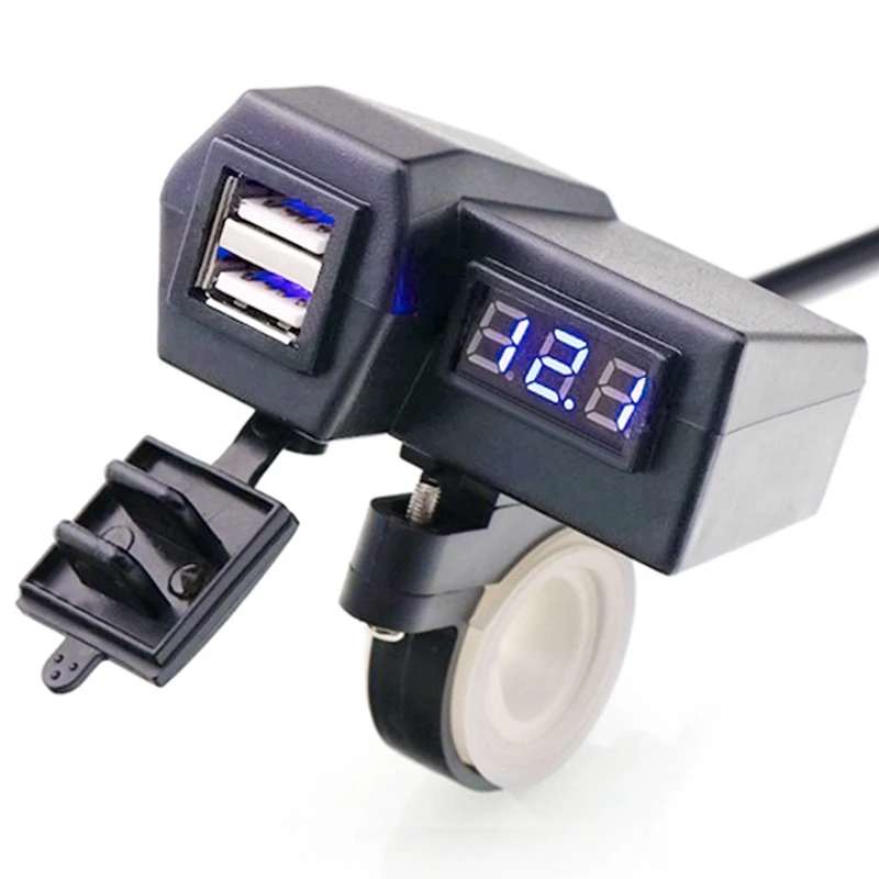 Зарядное устройство EAFC для мотоцикла, с двумя USB-портами, 12 В, 3,1 А, 2,1 А + 1 А, 12 В-5 В, 15 Вт, с вольтметром и светодиодным дисплеем
